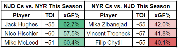 NJ never really used a large sample 3C against NYR this year and same for NYR’s 4C vs. NJ.